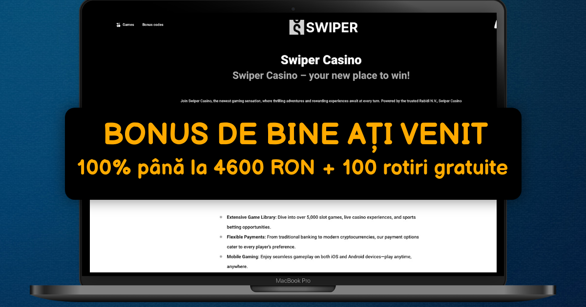 Swiper Casino vă întâmpină cu o experiență de joc premium în România, oferind un bonus de bun venit generos de 100% până la 2.000 RON plus 200 de rotiri gratuite. Cu cerințe de rulaj competitive de 35x, platforma deține licență Curaçao și garantează siguranță maximă pentru toți jucătorii români. Beneficiați de retrageri rapide în maximum 24 de ore și suport dedicat disponibil 24/7. Colecția noastră vastă include sloturi moderne, ruletă live cu dealeri profesioniști și jocuri cu jackpot online progresive care pot schimba viața. Colaborăm cu furnizori de top precum NetEnt, Pragmatic Play și Evolution Gaming pentru a vă oferi cea mai bună calitate. Versiunea mobilă optimizată vă permite să vă bucurați de jocurile preferate oriunde vă aflați, iar metodele de depunere și retragere includ carduri bancare, portofele electronice și transfer bancar instant.